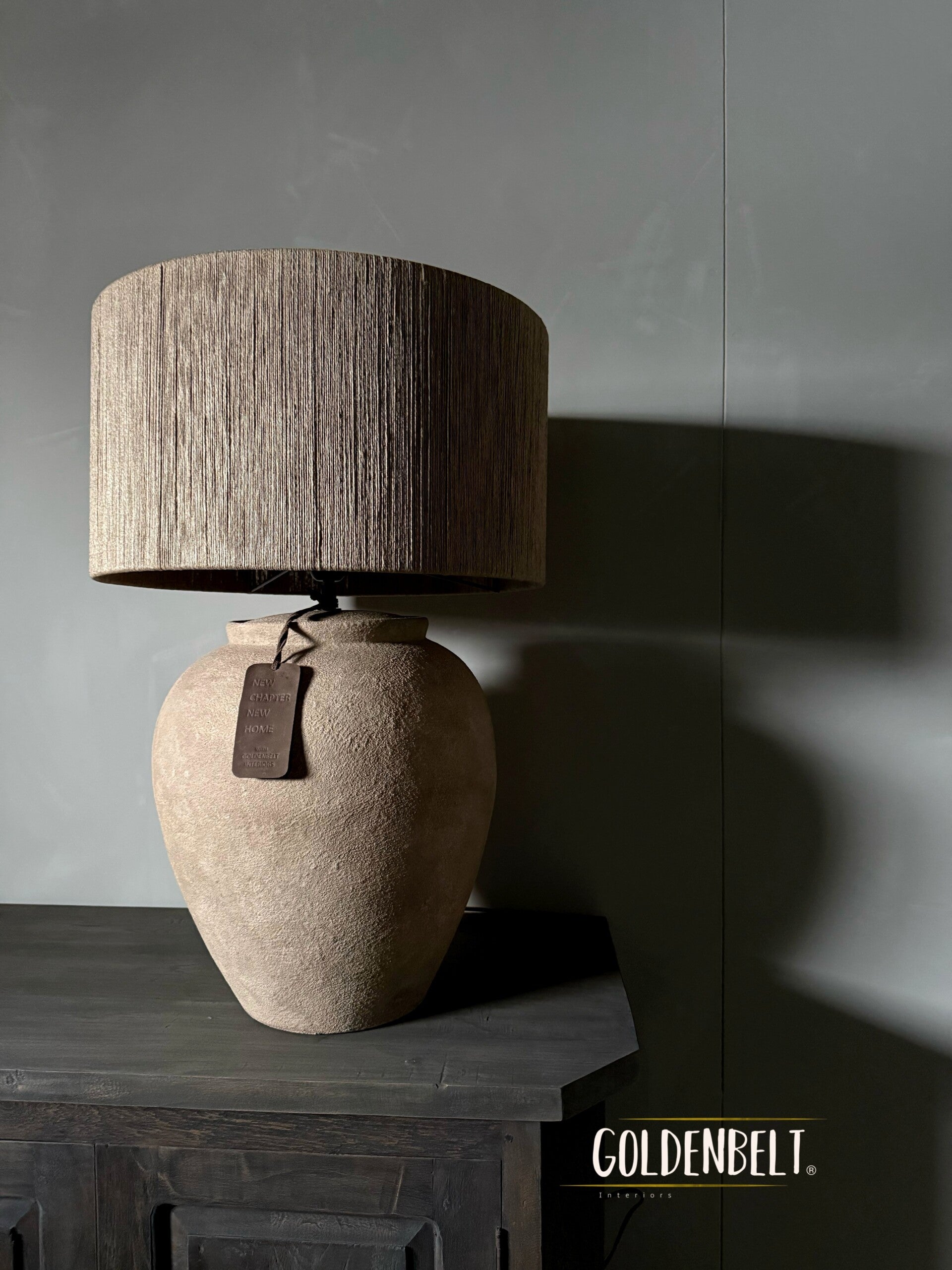Deze landelijke tafellamp past perfect binnen een landelijk sober interieur waar natuurlijke materialen, rust en balans centraal staan. Dhara van Goldenbelt interiors voelt aards en tijdloos. Is verkrijgbaar in 2 kleuren
